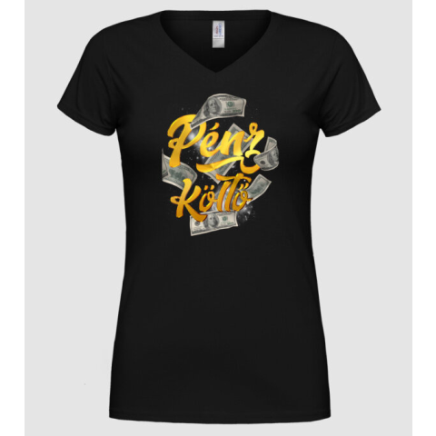 1 kép Pólómánia Pénz költő páros minta - Női V-nyakú Póló