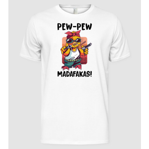 1 kép Pólómánia Pew Pew Madafakas Csirke white - Férfi Alap póló