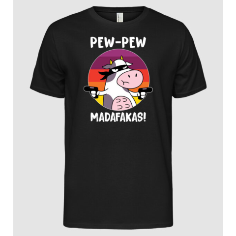1 kép Pólómánia Pew Pew Madafakas Tehén - Férfi Alap póló