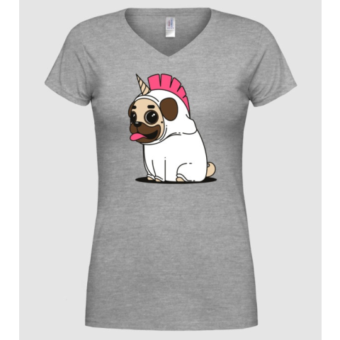 1 kép Pólómánia Pug Unicorn - Női V nyakú Póló
