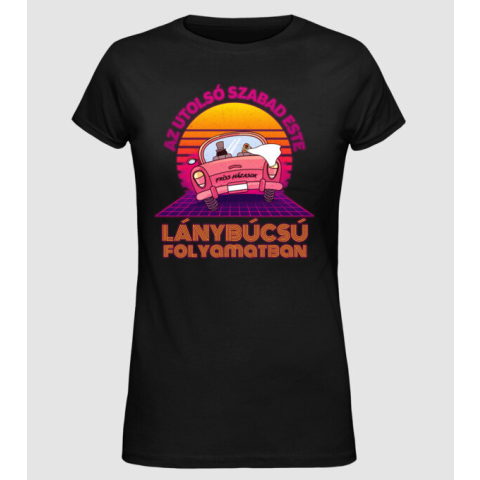 Pólómánia Retrowave lánybúcsú folyamatban - Női Alap póló női póló 1 kép