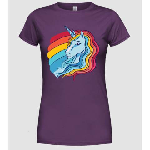 1 kép Pólómánia Szivárványos Unikornis - Női Kerek nyakú Póló