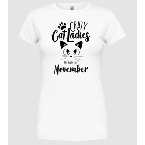 1 kép Pólómánia Szülinapos Crazy Cat Ladies NOVEMBER - Női Kerek nyakú Póló