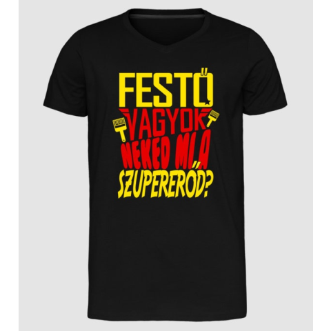 1 kép Pólómánia Szuperhős festő - Férfi Prémium Slim-Fit V nyakú Póló