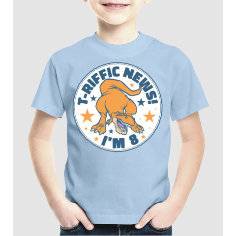 1 kép Pólómánia T-rex Terrific news i'm 8 - Uniszex Gyerek Póló