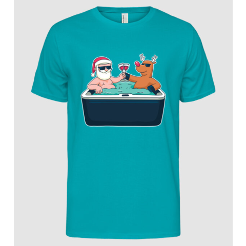 1 kép Pólómánia Télapó Rénszarvas Jakuzziban Karácsonyi Pihenés - Férfi Alap póló