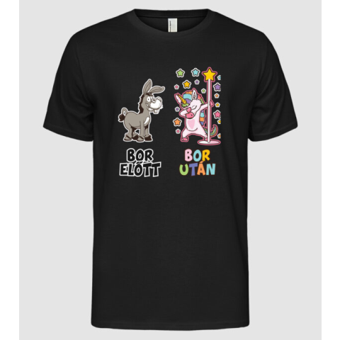 1 kép Pólómánia Unikornis Bor előtt után - Férfi Alap póló