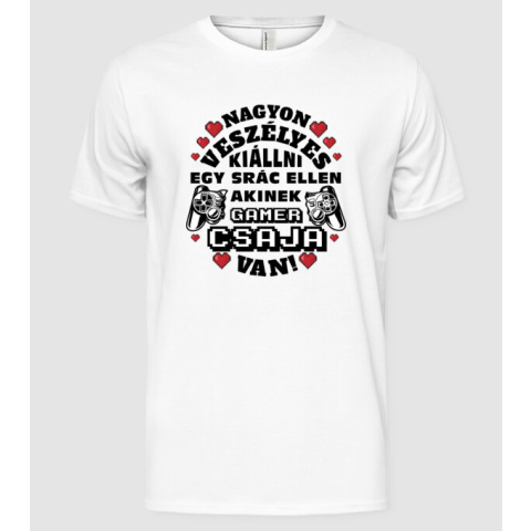 1 kép Pólómánia Veszélyes gamer szerelem srác fekete szöveg - Férfi Alap póló