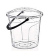 10 literes, átlátszó műanyag vödör fedéllel, sokoldalú háztartási felhasználásra. Ez a 10 literes átlátszó műanyag vödör fedéllel ideális folyadékok vagy egyéb anyagok tárolására és szállítására. A fedél biztosan zár, így megakadályozza a kifolyást vag