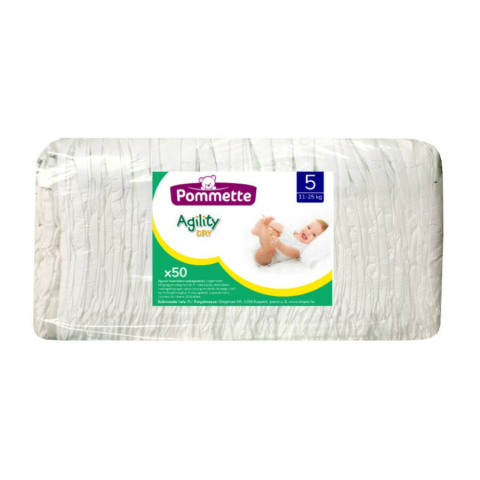 Pommette típusú nadrágpelenka széles gumis tépőzárral, vegyes mintával. Pommette típusú pelenka (5-ös méretben) Kifejezetten 11-25kg-os babák részére kifejlesztve Gazdaságos 50 dbos kiszerelésben Rugalmas flexitépőzárral, a még jobb illeszkedésér