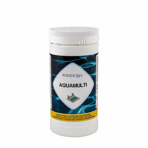 Az Aquamulti hármas hatású lassan oldódó 200 g-os klórtabletta mely: pelyhesíti a lebegő szennyeződéseket, gátolja az algák megtelepedését és szaporodását, valamint 90%-os aktív klórtartalmával fertőtleníti a vizet. Nagyobb kültéri