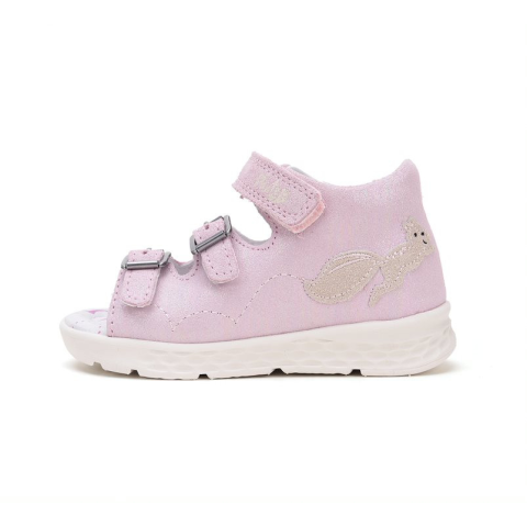 Csillogó, metáll pink színű, extra könnyű, zárt sarkú, hajlékony talpú, hasított bőr szandál. Remek választás lehet ovis szandálnak is. A zárt kérgű (sarokrészen zárt) szandálok stabil tartást biztosítanak a boka számára. A boka körüli rész párnázott a