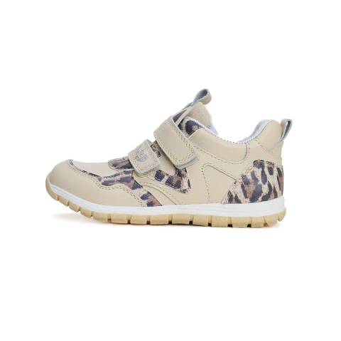 Ponte 20, krém, gepárd mintás, bőr betétes, lány, supinált, bőr edzőcipő. Gumi orra előre magasan felvezetett, talpa hajlékony, talpbetétje kivehető, könnyen tisztítható. Középszéles-széles lábtípusra ajánljuk!