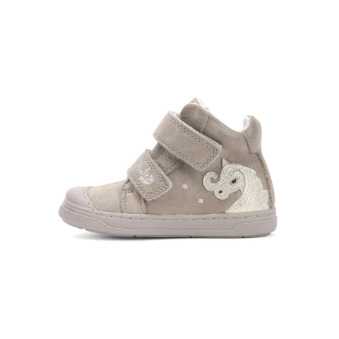 Szupinált kislány magasszárú cipő. Tépőzárral szabályozható, kívül-belül bőr gyerekcipő Megerősített kéreg, a stabil boka tartáshoz