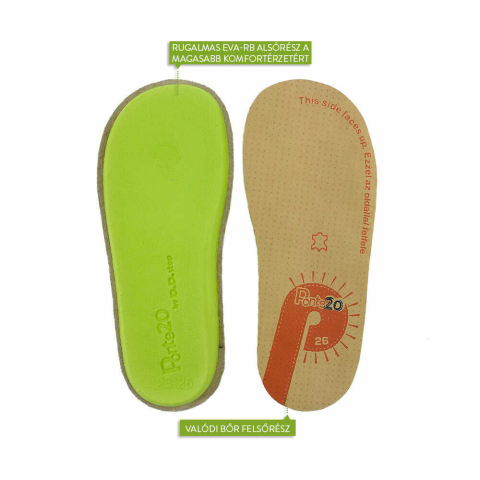 Valódi bőr felsőrész Rugalmas EVA-RB alsórész a magasabb komfortérzetért A sarokcsont korrekciós emelésével előzheti meg a gerincferdülést, a térdszalagok feszülését, sérülését X lábú, lúdtalpas, befelé dőlő bokájú gyerekek számára javasolt 5 mm döntéssel