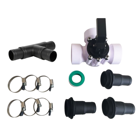 POOLTREND by-pass szett földfelszíni medencékhez. Csomag tartalma: T típusú 3 utas váltószelep, T elosztó idom 32/38 mm, Csőrögzítő bilincsek, Csatlakozás tömítő teflon szalag, Gégecső csatlakozó váltószelephez.