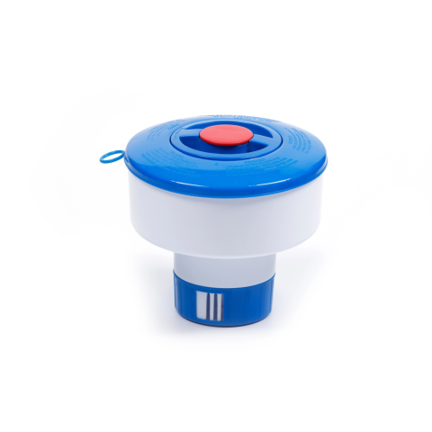 Úszó vegyszeradagoló lassan oldódó 200 g-os vegyszertablettákhoz. Folyamatosan és fokozatosan fertőtlenítheti, tisztántarthatja a medence vizét. Az alján egy elforgatható ablak található, ami segítségével beállíthatja a tabletta oldódási sebességét.