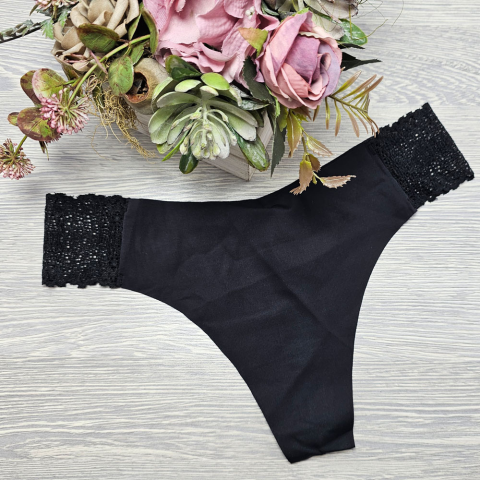 1 kép Poppy Lézervágott csipkés szélű tanga Fekete