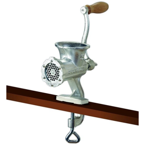 Húsdaráló - mechanikus, őrlés, húsfeldolgozási sebesség 0,5 kg/perc, darálás nagysága 4,5 mm, daráló mérete 4,5, anyaga alumínium, magasság 14,2 cm, tömege 2,29 kg, barna és ezüst kivitel Minőségi öntöttvasból gyártva. A felület élelmiszeripari ónnal kezelt. A termék egészségügyi bizonyítvánnyal rendelkezik. A csomagolásban 4,5mm átmérőjű vágólap található. A daráló kartondobozba