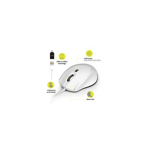 Vezetékes, USB, Optikai, 3600DPI, White, Csendes működés