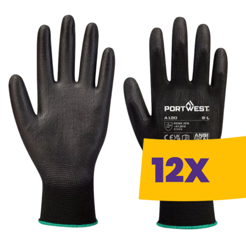 1 kép Portwest A120 Nylon védőkesztyű PU tenyérmártott fekete (Karton - 12 pár)