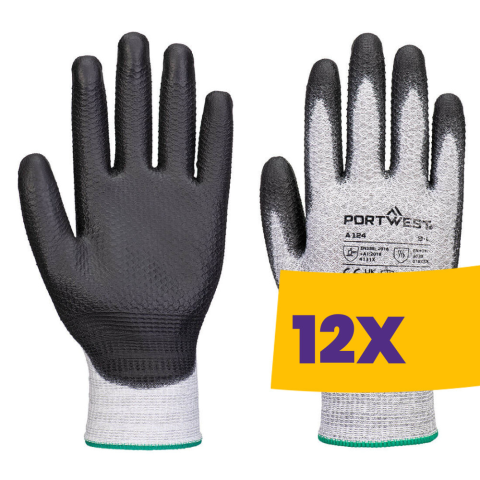 A Portwest A124 egy innovatív, érintőképernyő-kompatibilis munkavédelmi kesztyű, amely lehetővé teszi a digitális eszközök használatát a kesztyű levétele nélkül. A speciális gyémántkötésű anyag kiváló fogást és kézügyességet biztosít, míg a poliuretán ten