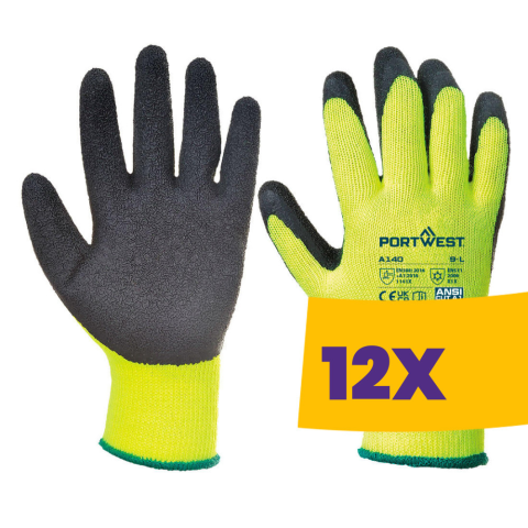 1 kép Portwest A140 Mártott latex védőkesztyű, téli kivitel sárga (Karton - 12 pár)