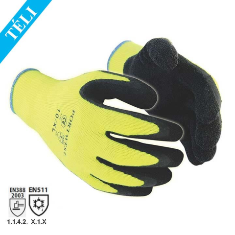 A Thermo latex mártott kesztyű ideális építőipari, logisztikai, karbantartási és kommunális feladatokhoz. Portwest A140 egy igazán jó választás a hideg napokra EN388 1.1.4.1 Meleg, komfortos acryl belsőrésszel rendelkezik. Hideg időben, fokozott igénybev