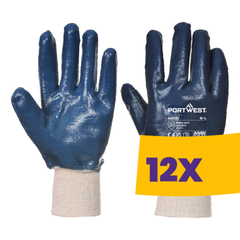 A Portwest A300 egy teljesen mártott nitril védőkesztyű, amely kiváló védelmet nyújt olajokkal, zsírokkal és vegyszerekkel szemben. A pamut jersey bélés kényelmes viseletet biztosít, míg a robusztus nitril bevonat rendkívüli kopásállóságot és tartósságot
