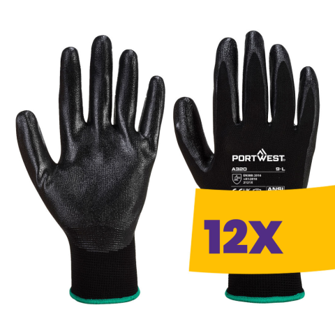 A Portwest A320 egy könnyű és nagy kézügyességet biztosító nejlon kesztyű, nitrilhab tenyérbevonattal. A mikroporózus bevonat kiváló tapadást biztosít száraz és olajos környezetben is, miközben légáteresztő, így csökkenti a kéz izzadását. Ideális választá