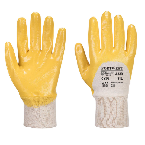 A Portwest A330 egy teljesen mártott nitril védőkesztyű, amelyet rugalmas, kötött mandzsettával láttak el a stabil és kényelmes illeszkedés érdekében. A strapabíró nitril bevonat kiváló védelmet nyújt olajok, zsírok és mechanikai sérülések ellen, míg a pa