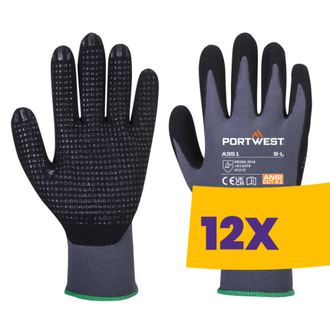 Portwest A351 DermiFlex Plus védőkesztyű szürke (Karton - 12 pár)