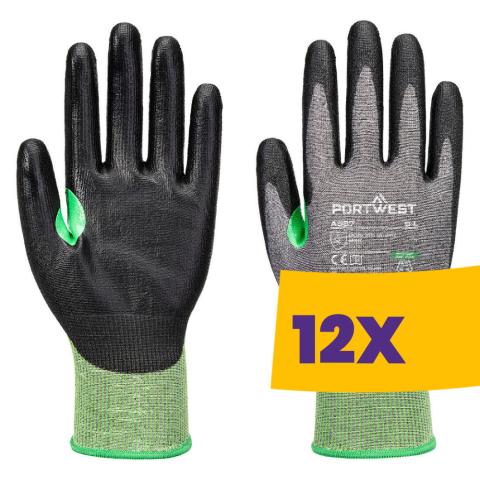 A Portwest A637 egy forradalmian vékony, 18-as kötésű, C szintű vágásbiztossággal rendelkező védőkesztyű. A HPPE bélés kiváló vágásvédelmet nyújt, míg a PU tenyérbevonat páratlan kézügyességet és tapintásérzékenységet biztosít. Ideális választás a legprec