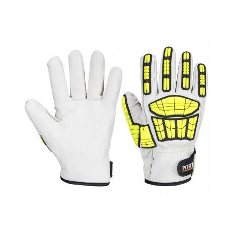 A Portwest A745 Impact Pro Cut egy D szintű vágásbiztossággal és tanúsított ütésvédelemmel rendelkező, prémium bőr védőkesztyű. A kecskebőr tenyér kiváló kézügyességet és tartósságot biztosít, a HPPE bélés a vágásoktól, a TPR panelek pedig az ütésektől vé