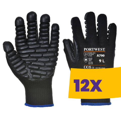 1 kép Portwest A790 Antivibrációs kesztyű fekete (Karton - 12 pár)