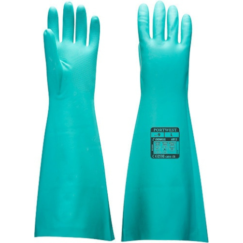 Vegyszerálló védőkesztyűk | Extra hosszú nitril kesztyű Cikkszám: A813Extra hosszú 48cm vegyszerálló kesztyű kiválló védelmet nyújt számos oldószer ellen. A csúszásgátló mintázat kiváló tapadást biztosít száraz és nedves körülmények között. A 055mm va