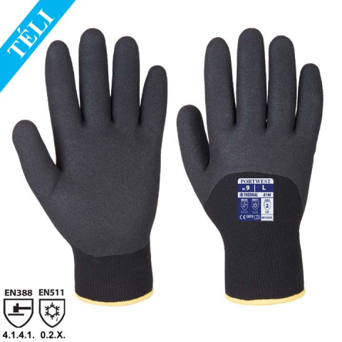 Hideg elleni, nedves körülmények között is használható kesztyű Új fejlesztésű védőkesztyű! Dupla béléssel, puha, 3/4 mártású micro foam nitril bevonattal. Kiválóan véd a hideg ellen. Nyitott kézhát a szellőzésért. Jellemzők Hideg körülményekre tervezet