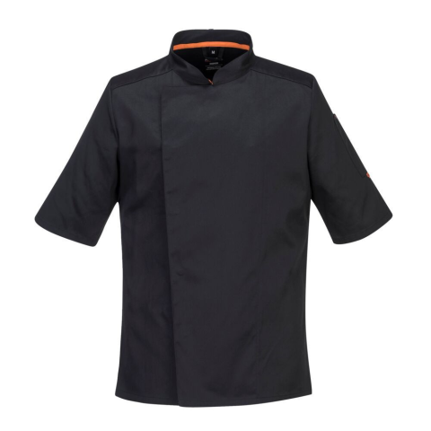 A Portwest C738 MeshAir Pro séfkabát prémium szellőzést és kényelmet biztosít a forró konyhai környezetben. Innovatív MeshAir Pro hálós panelei és strapabíró Kingsmill anyaga révén ideális választás a modern szakácsok számára. Letisztult, fekete dizájnja