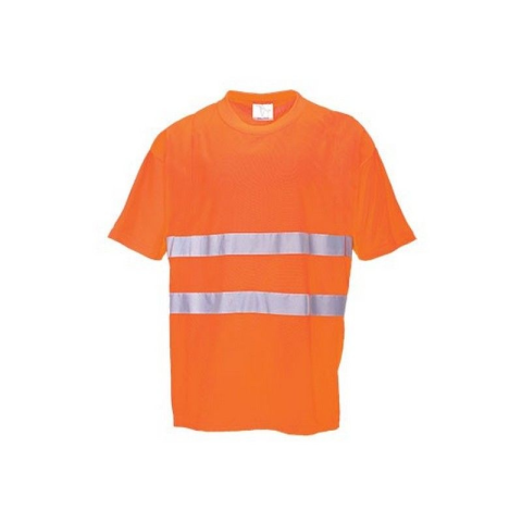 Hi-Cool pólóing gyártó: Portwest cikkszáma: S172 A termék megfelel az EN ISO 20471 Class 2 GO/RT 3279 szabványnak. 55 % Pamut, 45 % Poliészter 175 gr A Portwest S172 Hi-Cool pólóing kerek nyakkal készül. A fényvisszaverő szalagok a mellrész alatt fut