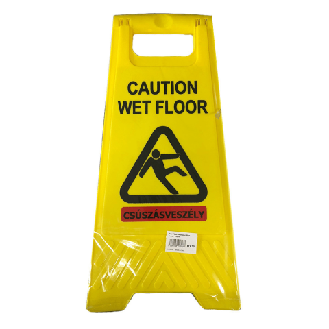 Csúszásveszély figyelmeztető tábla. Mindkét oldalon feliratozással, nedves padló szimbólummal. A csomag tartalmazza a magyar nyelvű feliratozást is! Csúszásveszély figyelmeztető tábla. Mindkét oldalon feliratozással, nedves padló szimbólummal. A csomag
