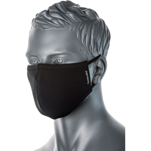 1 kép Portwest CV22 - 2 rétegű fekete anti-mikrobiális arcmaszk mosható, vasalható