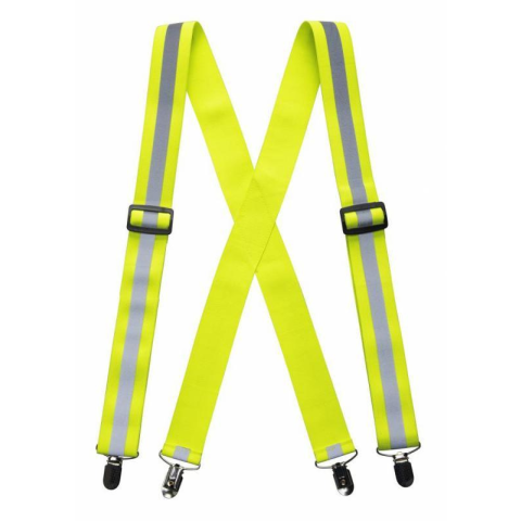 (HV56) Jól láthatósági nadrágtartó Négy rögzítési ponttal, bármilyen nadrághoz csatlakoztatható, kiváló láthatóságot biztosító nadrágtartó A termék megfelel az EN 13356 szabványnak. 4 x fém klip rögzítő, a nadrághoz való biztonságos rögzítéshez A pánt a