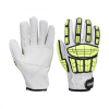 A Portwest A745 Impact Pro Cut egy D szintű vágásbiztossággal és tanúsított ütésvédelemmel rendelkező, prémium bőr védőkesztyű. A kecskebőr tenyér kiváló kézügyességet és tartósságot biztosít, a HPPE bélés a vágásoktól, a TPR panelek pedig az ütésektől vé
