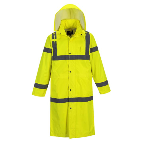 Kiváló ár-érték arányt képviselő, 122cm hosszú esőköpeny, mely teljes védelmet nyújt rossz időjárási körülmények között. Jellemzői: rejtett kapucni, fedett zippzár, nagy tároló zsebek, rádióhurok és azonosítókártya tartó. Szabványok: EN ISO 20471 Class 3