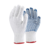 Könnyű, kényelmes, egy darabban kötött kesztyű PVC kék pontozással.