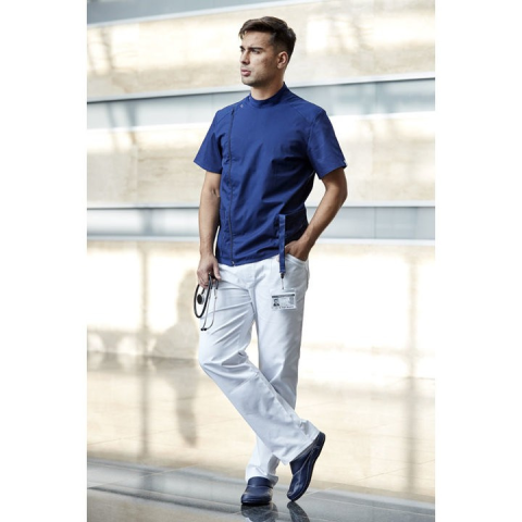 Orvosi nadrág Hagyományos férfi orvosi nadrág gomb-cipzárral. A derékrész hátsó részén kis gumirozott betét a tökéletes méret eléréséhez. Alapanyag: finom tapintású, könnyen kezelhető (jól vasalható) vászonanyag. Összetétel: 65 % poliészter, 35 % pamu