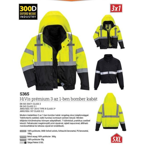 1 kép Portwest S365 - HIVIS PRÉMIUM 3 AZ 1-BEN BOMBER KABÁT