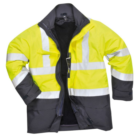 Lángálló és antisztatikus esőkabát gyártó: Portwest cikkszáma: S779 A termék megfelel az EN471 CLASS 3:2 EN343 CLASS 3:2 EN ISO 14116 EN1149 szabványoknak. Multi-Protection vízálló, lélegző kabát, mely többféle kockázatokkal, például hőhatással sze