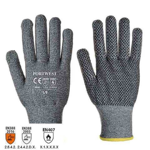 A Portwest A640 Sabre egy magas, D szintű vágásbiztossággal rendelkező védőkesztyű, amelyet mindkét oldalán PVC pontozással láttak el a kiváló fogásbiztonság és a hosszabb élettartam érdekében. A HPPE és üvegszál bélés megbízható vágásvédelmet nyújt. A ke