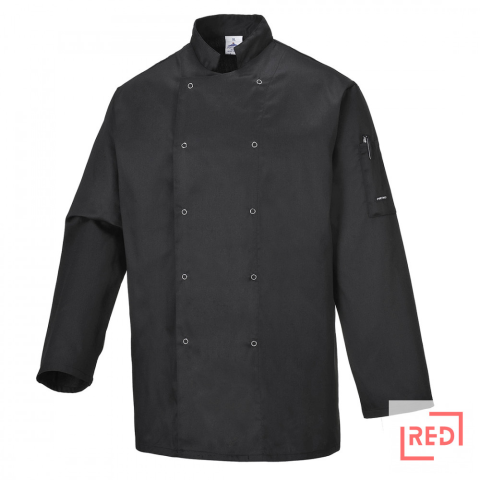 A Suffolk séfkabátot a profiknak terveztük. Kiválóan alkalmas a modern konyhákon történő munkavégzéshez. Kopásálló, tartós, színtartó anyagból Az alapanyag nem zsugorodik, megőrzi a termék eredeti méretét a mosások után. Patent gombos elülső rész a kön